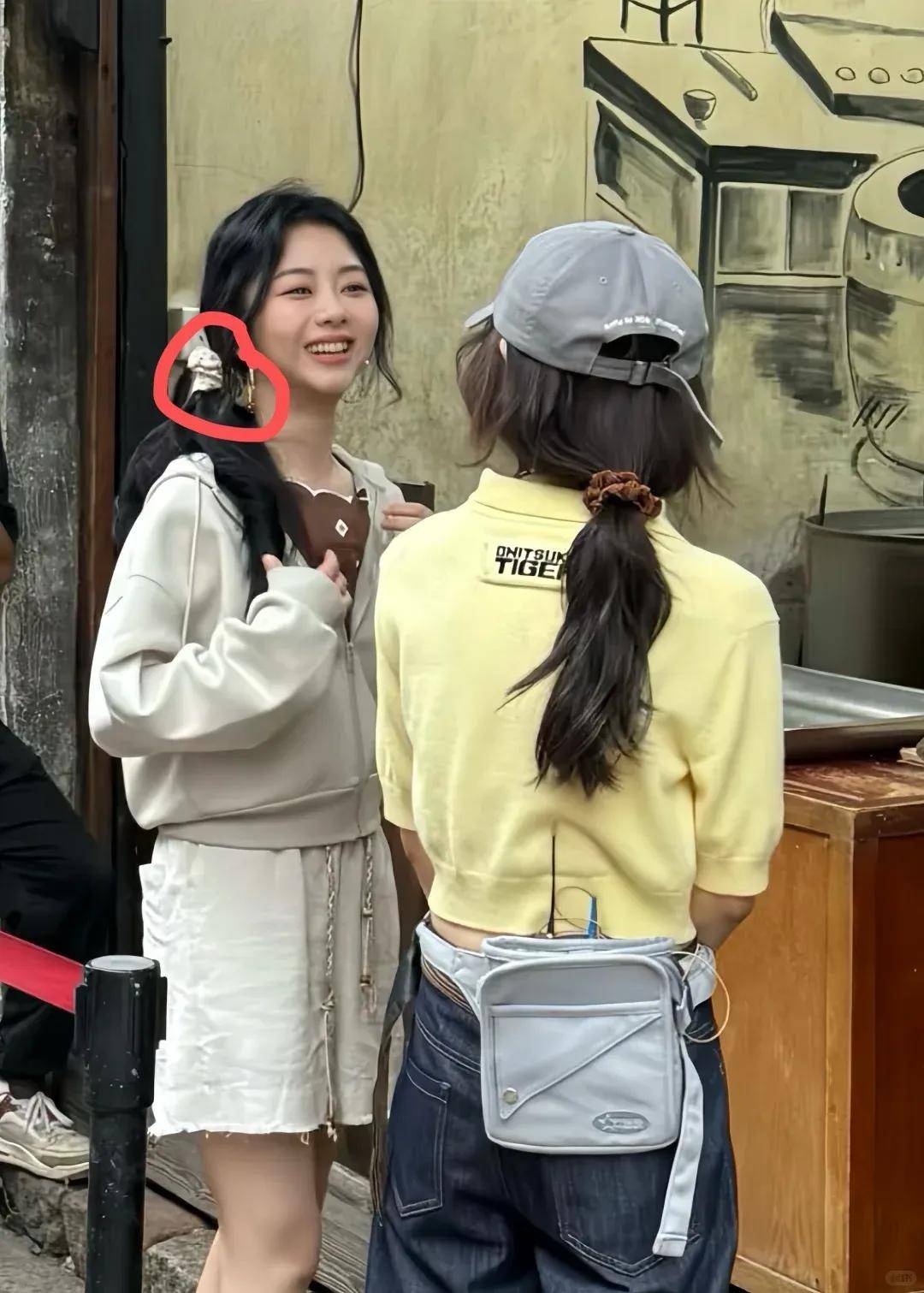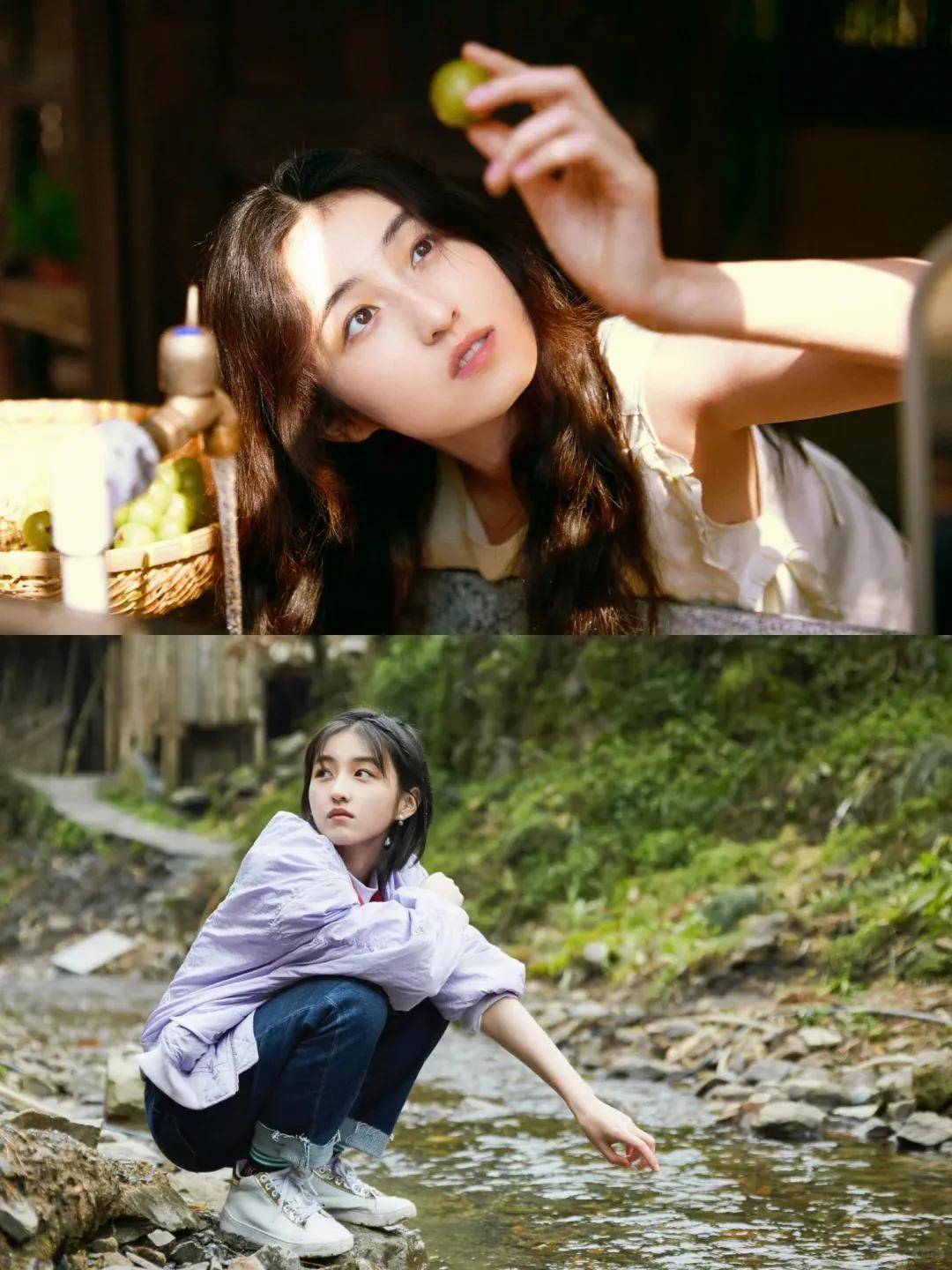 最动人的重逢莫过于谭松韵。路透照里她低头浅笑的模样,比《以家人之名》时期更添灵气。有趣的是,如今33岁的她与24岁的张子枫同框摘菜时,反倒是年长者眼里的星光更盛。棉麻长裙与帆布鞋的搭配,被江南烟雨晕染成水墨小品,让人想起她曾被嘲"三十岁演高中生"的往事。如今她活成了最好的反驳:真正的少女感,原是与岁月和解后的从容。