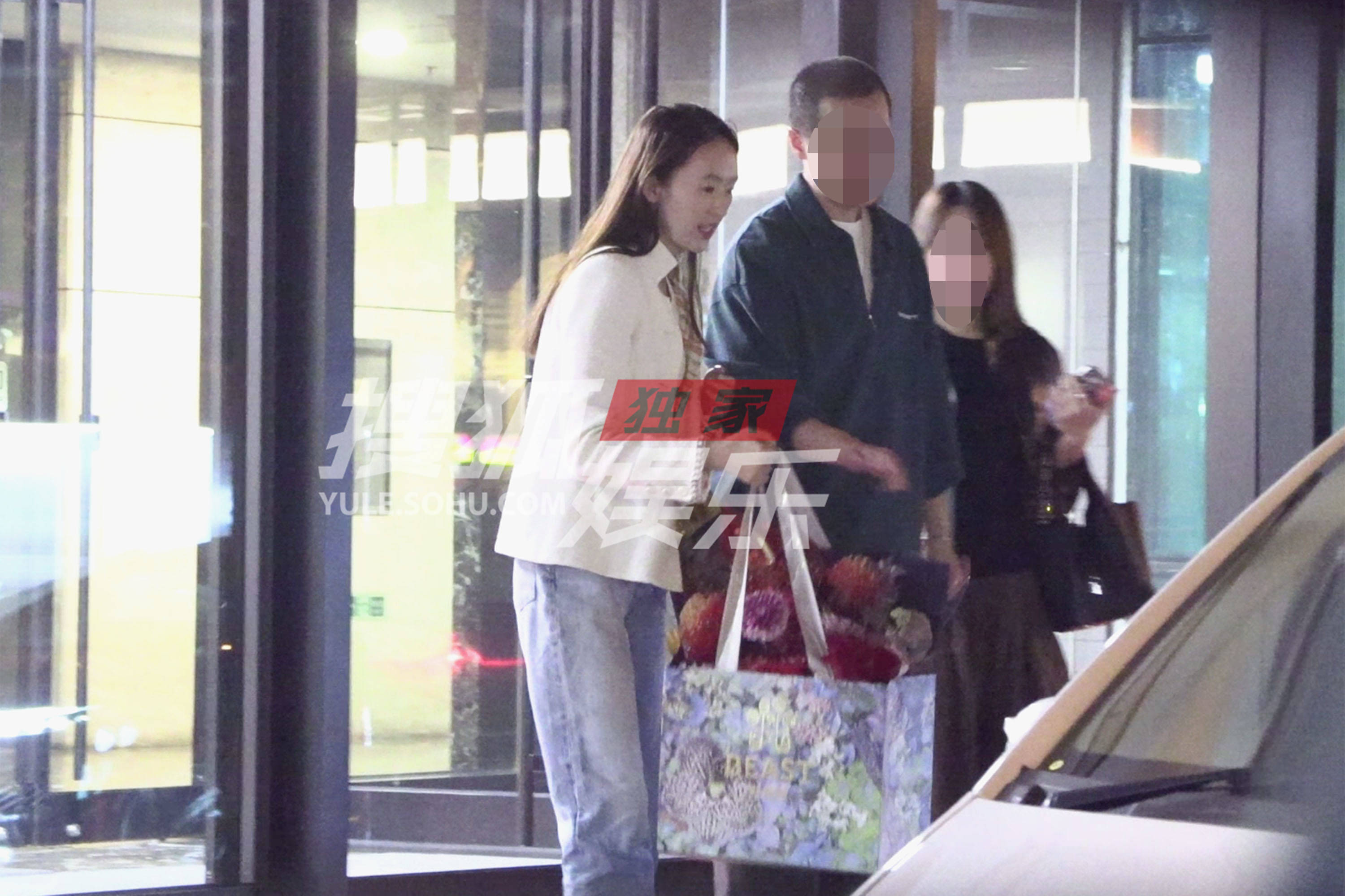 随后,她去聚餐吃饭,又收获满满一大捧花束。提着花上车时,童瑶开心的像个小女孩。