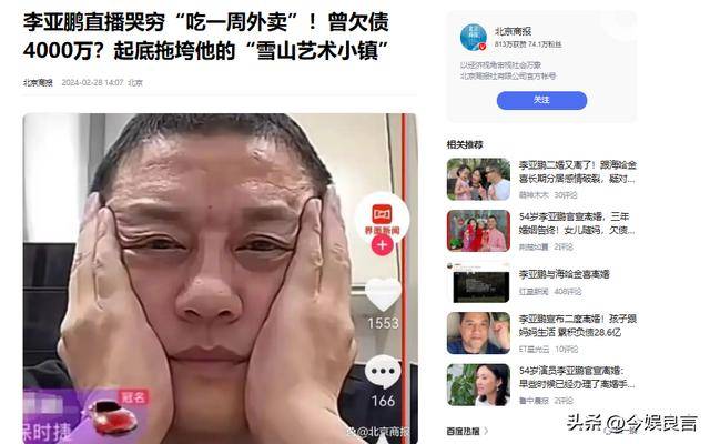 如今的李亚鹏,虽然债务缠身、婚姻结束。