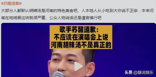 信息来源:潇湘晨报——苏醒回应被指拉踩河南胡辣汤:向河南人道歉,确实是说得不太对