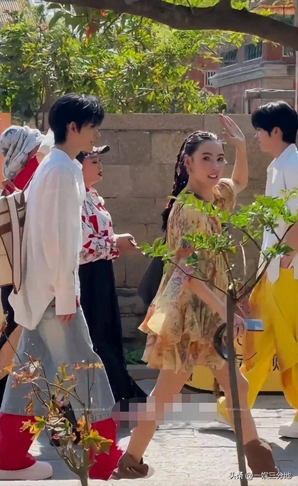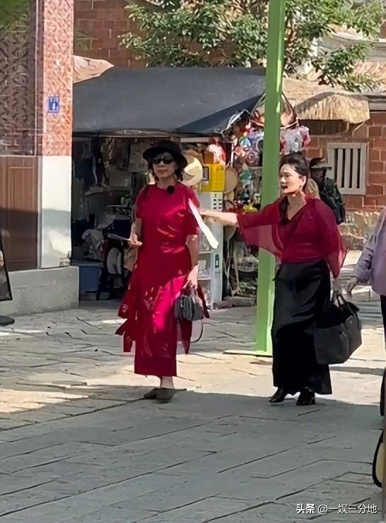 做完簪花造型后,刘嘉玲也一个人走在最前面,完全不参与大家在后面的讨论。