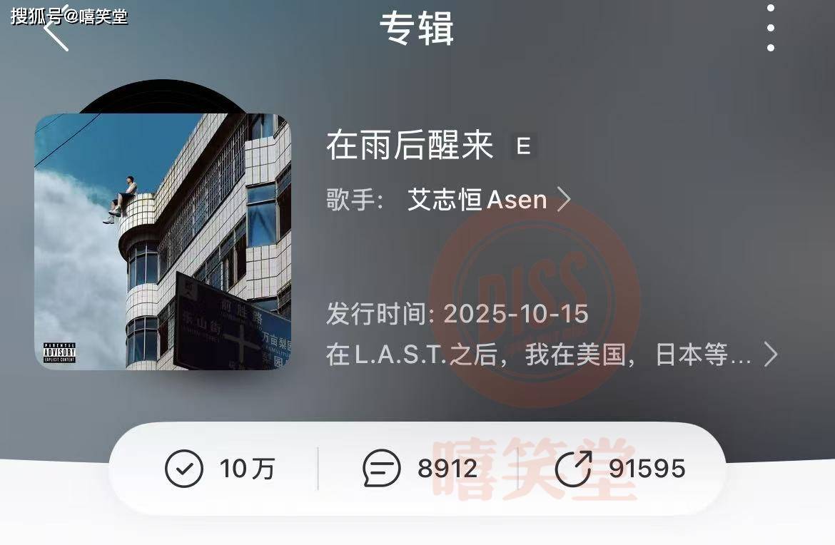 ASEN新专辑《在雨后醒来》收藏量达到10万,创造中文说唱记录。