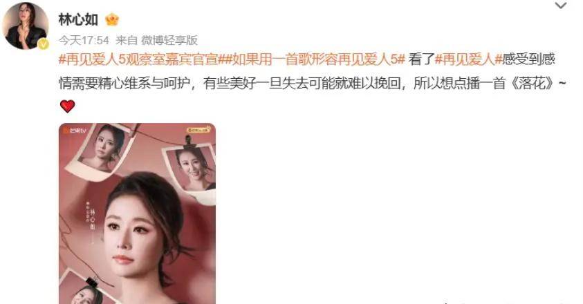 最近就爆出来一个大消息,林心如,你们都认识吧,她都快49岁了,是个资深的大明星,也是个厉害的制片人,她竟然要去《再见爱人》第五季当观察团了。这事一出来,大家心里就都炸开了锅。