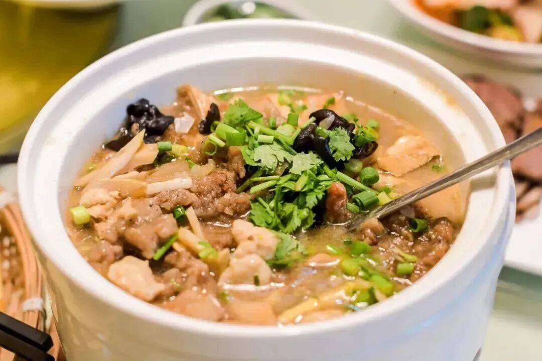 武陟砂锅历史悠久,其特色就是白煮,把肉类食材放入砂锅用微火慢慢煨煮几个小时,汤味浓厚,肉质香烂,可谓原汤原汁。因砂锅不易散热,离火后锅中会继续滚煮,这时,加入嫩绿的小青菜和刚炸好的鲜红辣椒油,色彩艳丽,香气扑鼻,可谓不可不尝的美味佳肴。