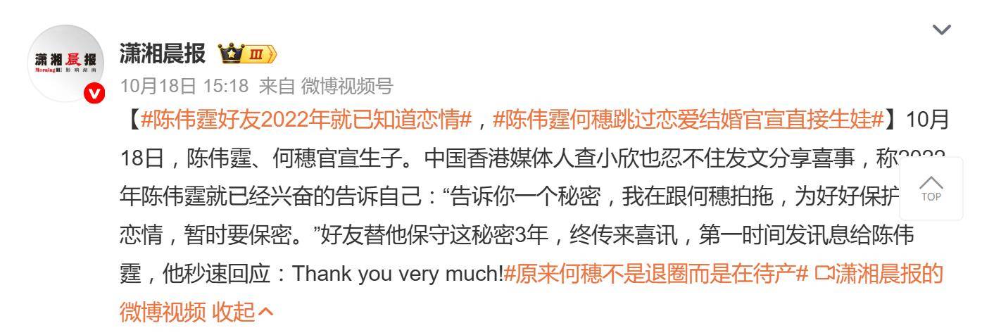 这枚重磅炸弹抛出后,香港资深媒体人查小欣的一篇发文,更是揭开了这场长达数年“地下情”的隐秘一角。她透露,早在2022年陈伟霆回香港拍摄电影《爆裂点》期间,就曾私下兴奋地跟她分享秘密:“告诉你一个秘密,我在跟何穗拍拖,为好好保护这段恋情,暂时要保密。”