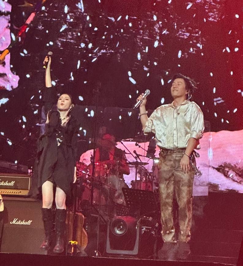 然而,最让人惊喜的是,郑钧与前妻所生的女儿也现身演唱会。她不仅是郑钧和声团队的重要成员之一,随后更登台与父亲合唱,父女同台的温馨画面赢得了现场观众的热烈掌声。