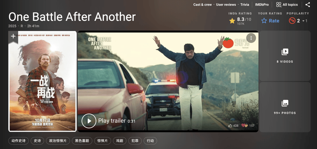 《一战再战》以成熟的类型片语法为框架,将高强度的动作场面与悬疑叙事紧密结合,既符合主流市场对视觉奇观的期待,又将主角鲍勃的成长困境巧妙嵌入剧情,使得严肃的主题在沉浸式叙事中自然落地。