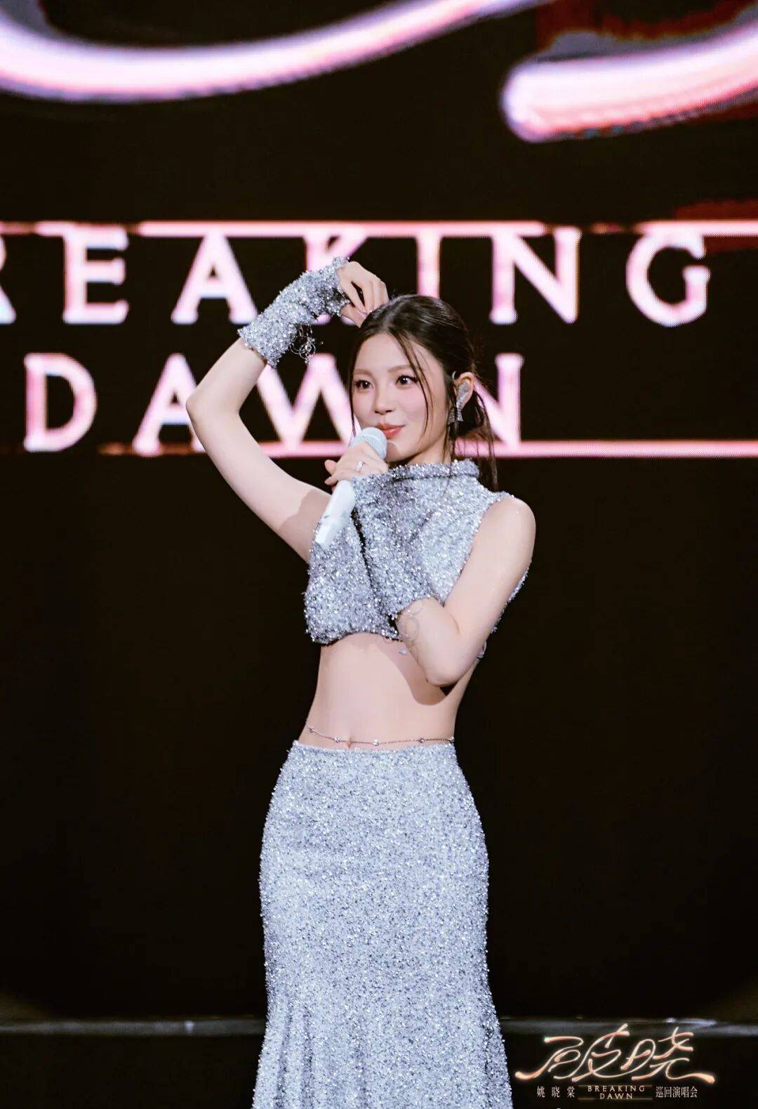 上海站演唱会期间,姚晓棠因粉丝应援VCR落泪、摇滚版《下一个天亮》等事件引发情感共振,她的纤细腰线,更是成为舞台魅力的延伸符号。