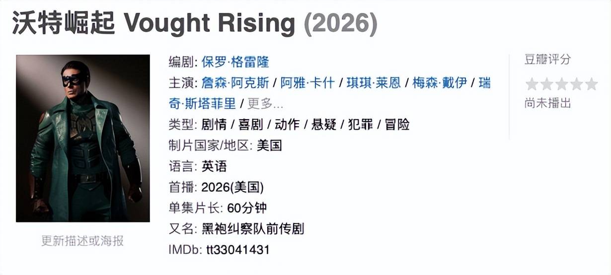 同时,《黑袍纠察队》前传剧《沃特崛起》(Vought Rising)也在积极筹备中。