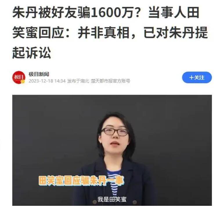 无奈之下,朱丹一纸诉讼将田笑蜜告上了法庭。