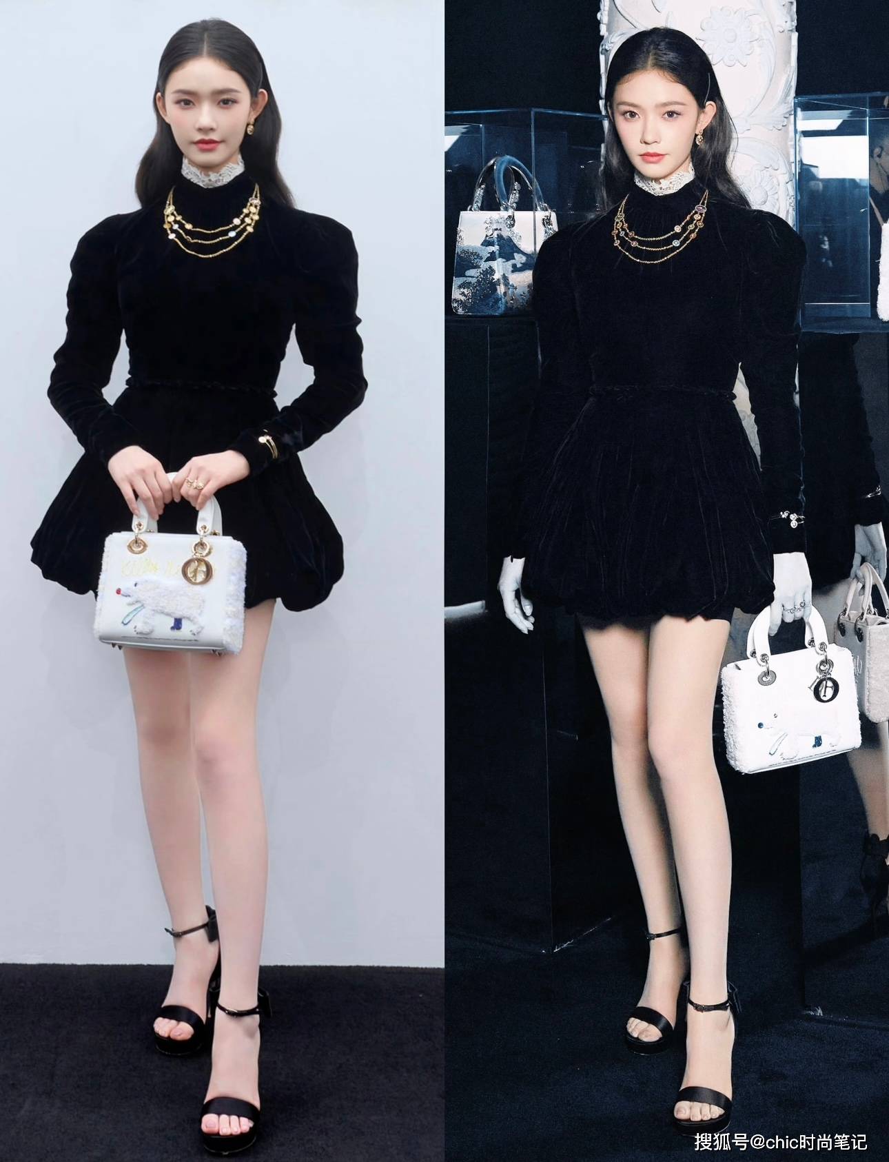 林允是典型的浓颜系长相,越是华丽、富贵的造型越能展现她的魅力。一身黑丝绒连衣短裙妥妥的千金大小姐气质,搭配奢华珠宝配饰,美的很有“攻击性”。