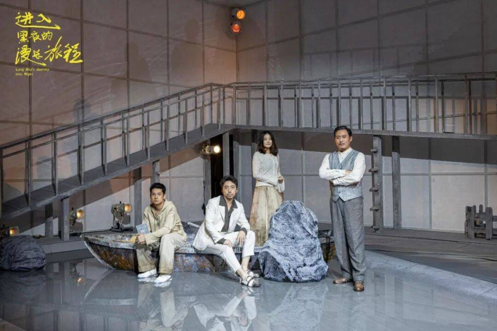 四位演员舞台照,从左至右依次为:王佳骏饰演弟弟埃德蒙、杜子俊饰演哥哥杰米、龙一仪饰演母亲玛丽、孙大川饰演父亲蒂隆。本文剧照摄影:李春光
