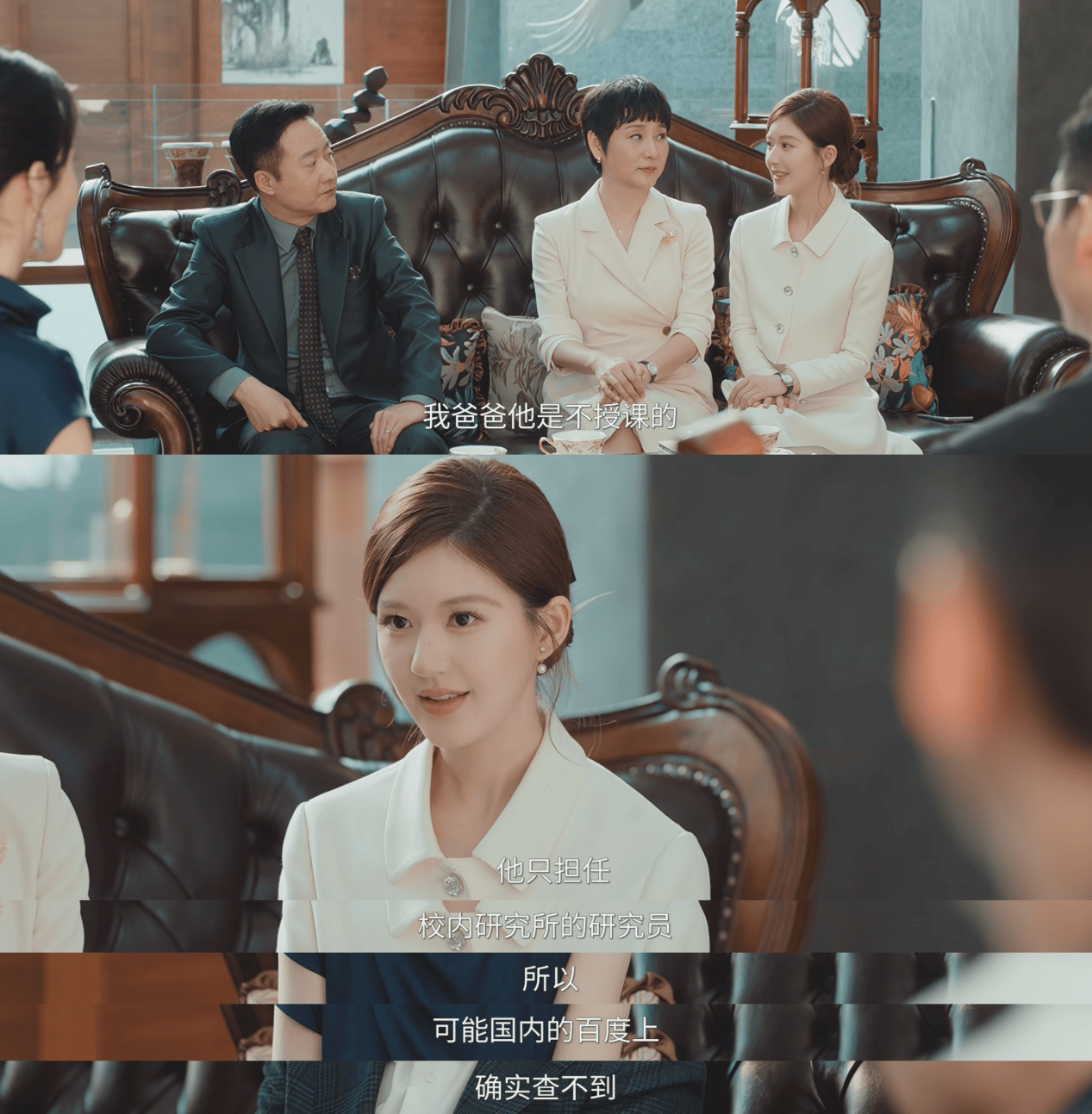后来因为采访工作,许妍偶尔结识了富二代沈皓明(陈伟霆饰),沈皓明的温柔体贴以及对许妍的坚定选择,让许妍爱上了他。但是,许妍所处的普通阶层与沈皓明代表的豪门阶层之间的巨大差距,让她陷入严重的身份焦虑,她清楚地知道沈皓明的母亲对于门当户对的看重,她贫穷的出身不可能过沈母这一关,于是她选择虚假包装自己的出身。许妍找陌生人扮演“高知父母”,为了让谎言更可信,她提前让假父母背稿,还准备了科研资料、业内权威书籍当见面礼,还让假父亲提前练习签名……许妍成功地瞒天过海,嫁入豪门。