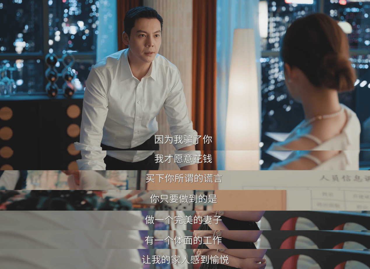 相形之下,假冒的许妍,反而是一个“完美人选”。许妍“风险可控”。她没有家族背景、没有圈层人脉,在沈家完全无依无靠,所有的“体面”都依赖沈皓明赋予,一旦失去沈皓明的支持,她便会重回底层,这种“依附性”让沈皓明自认为能轻易拿捏她。即使许妍后期发现沈皓明欺骗她的真相,她也没有能力对沈家造成实质性伤害。许妍还“情感可控”。因为原生家庭创伤,许妍极度渴望被爱、被认可,沈皓明只需偶尔表现出“温柔”,就能让许妍心甘情愿为他付出,给他提供情绪价值。何况,许妍本身欺骗了沈皓明,这种愧疚感只会让她加倍对沈皓明好。