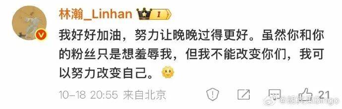 可是晚奶老公大嘴子看到了又开始发癫,来了这条评论控诉胡宾果和粉丝羞辱他。
