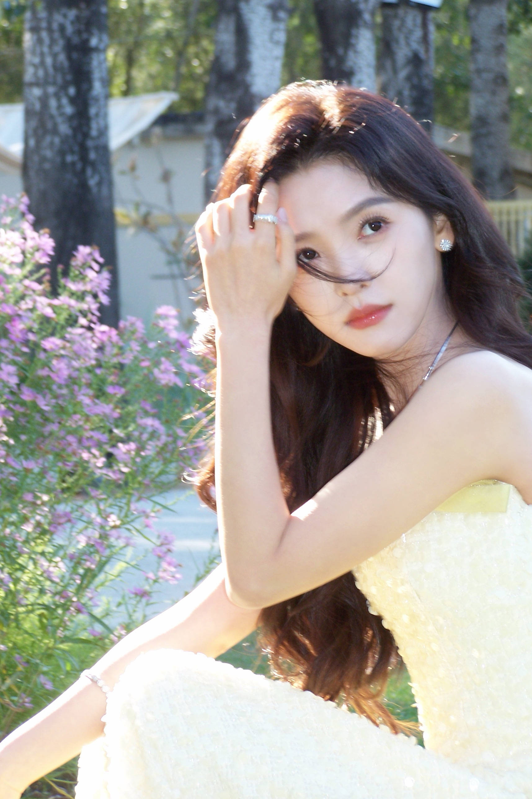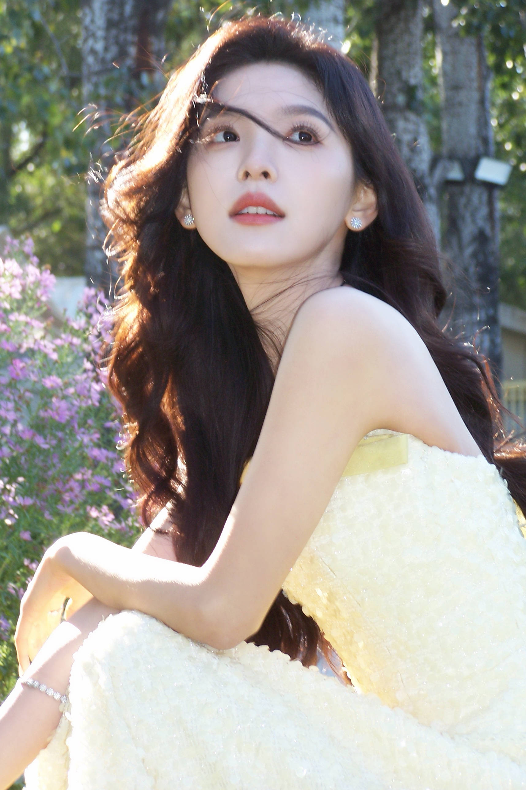 章若楠回眸,一缕碎发格外亮眼。