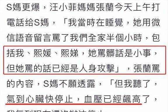 S妈直接说了,张兰打电话骂她们全家骂了半个小时,听得S妈的血压都飙上来了,心脏差点受不了。
