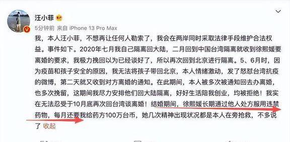 她曾通过律师公开发表声明,称从未伤害汪小菲的身心,对汪爸爸和张兰发自内心尊重。