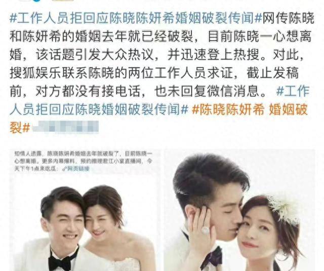 身处娱乐圈,每天面对八卦媒体报道的“离婚、分手”等热搜,陈晓和陈妍希或许早已见怪不怪,就比如这一次闹的全网都知道的“婚变风波”。