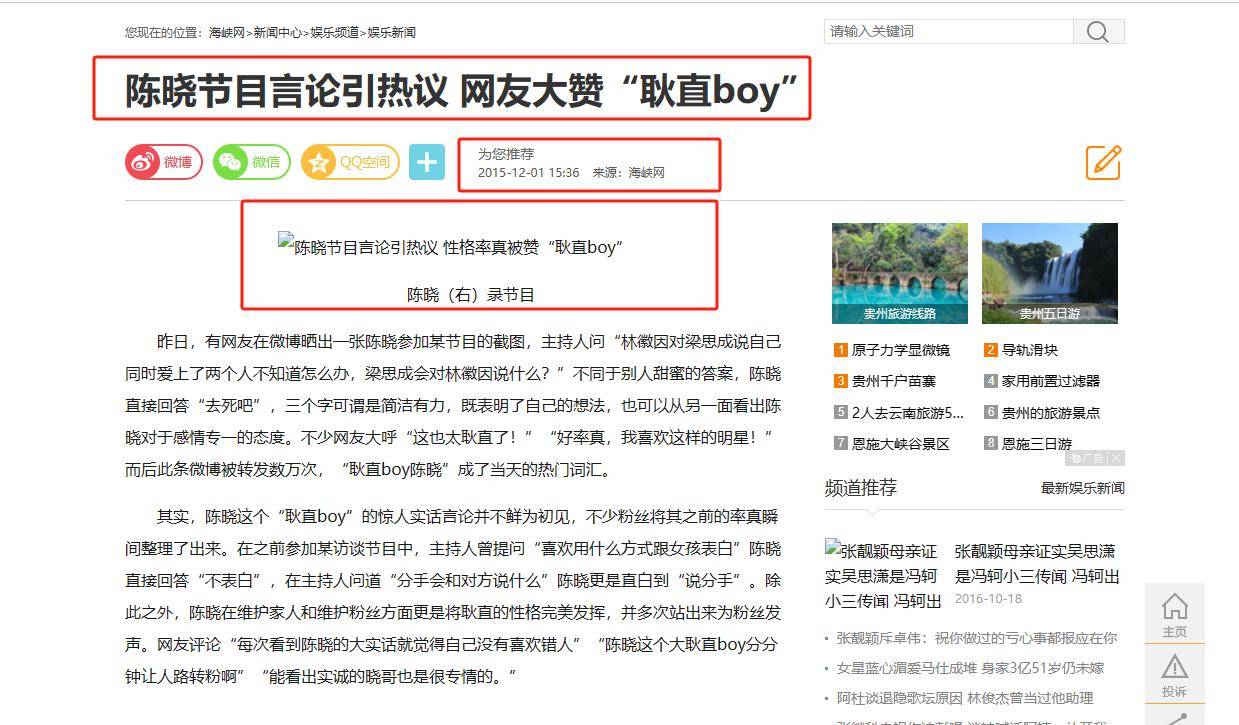 陈晓节目言论引热议网友大赞“耿直boy”2015-12-0115:36来源:海峡网