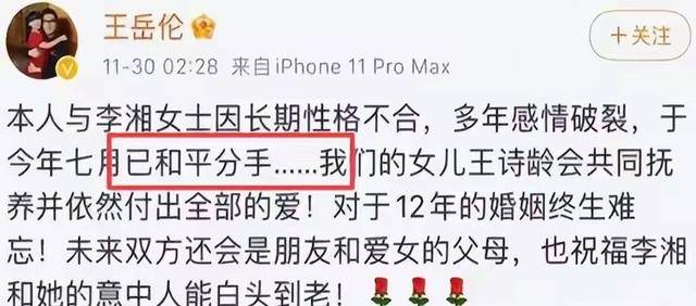 后来王岳伦在社交平台上发布了离婚消息,