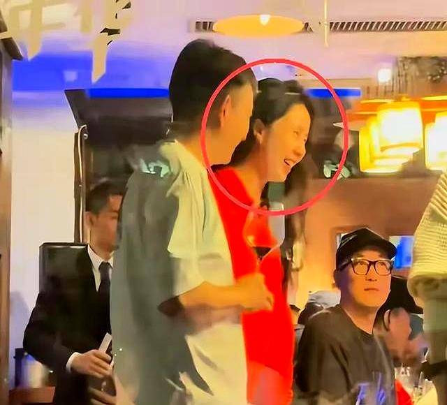 反倒是黄磊的老婆孙莉,穿着一件大红外套,一下子在人堆里跳出来,社交起来一点不输男人,和每个人都能聊开。