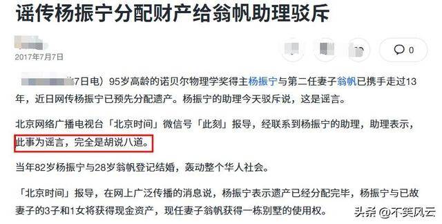 要知道,类似的谣言 2017 年就出现过一次,但当时杨振宁的助理直接回了四个字: