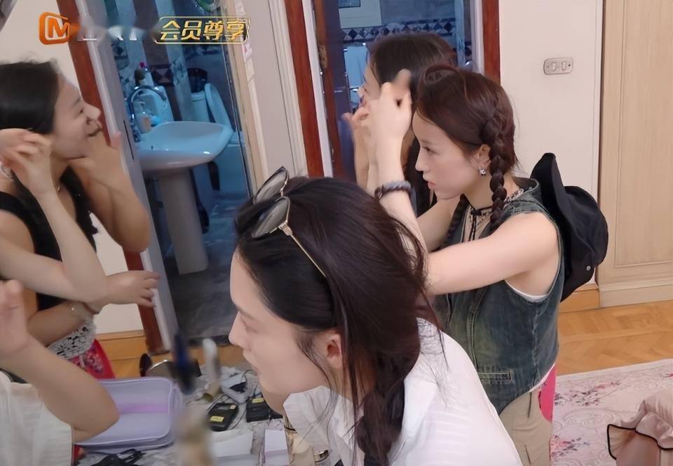大家一同起床、洗漱,然后默契地来到镜子前化妆。