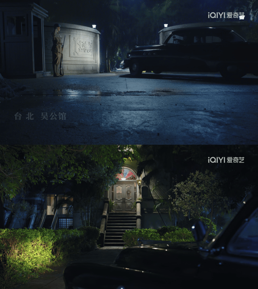 另一个主场景——台湾‘国防部’那栋著名大楼,剧组则在上海车墩根据历史影像和具体资料,1:1地搭建制作了出入大楼的门厅,其他部分则用特效来绘制解决。