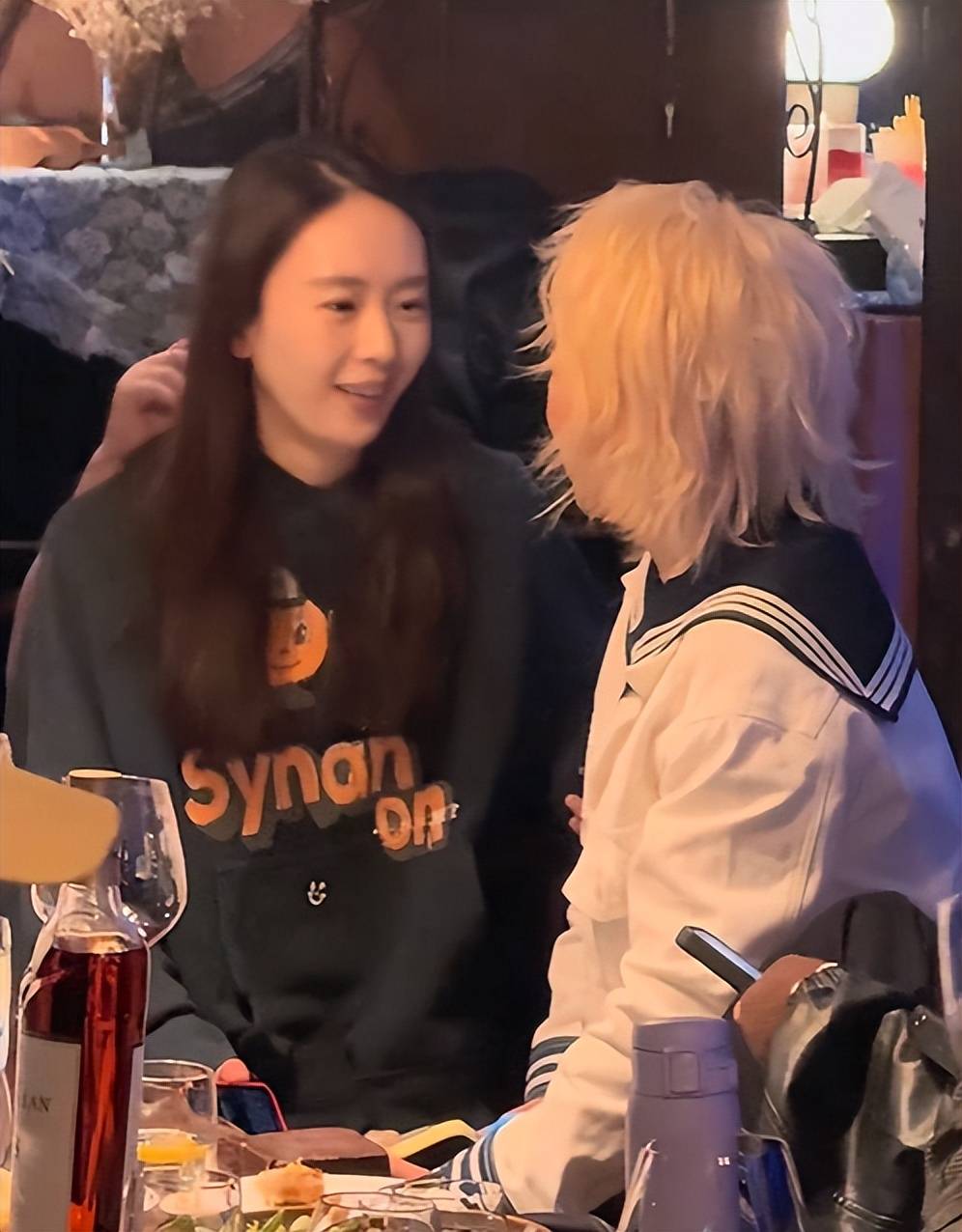 在明星聚餐时,童瑶穿着连帽卫衣坐在席上,不施粉黛的脸蛋白净透亮,高挺的鼻梁格外出众。