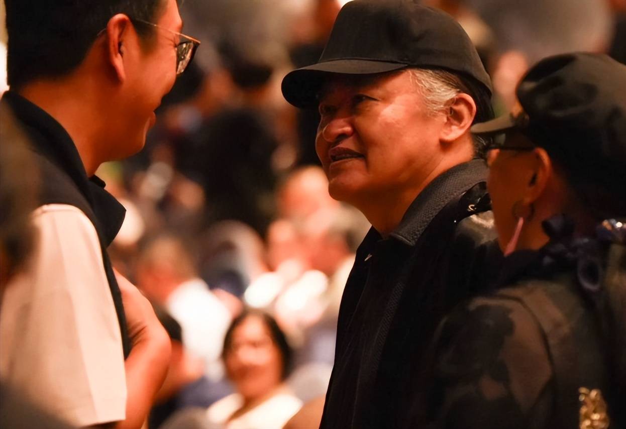 熟悉的黑色鸭舌帽扣在脑袋上,姿态随和又从容的与周围的人交谈,眼神柔和,给人一种温暖、亲切的感觉,不愧是老一辈艺术家,气质就是不一般。
