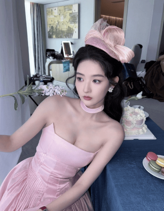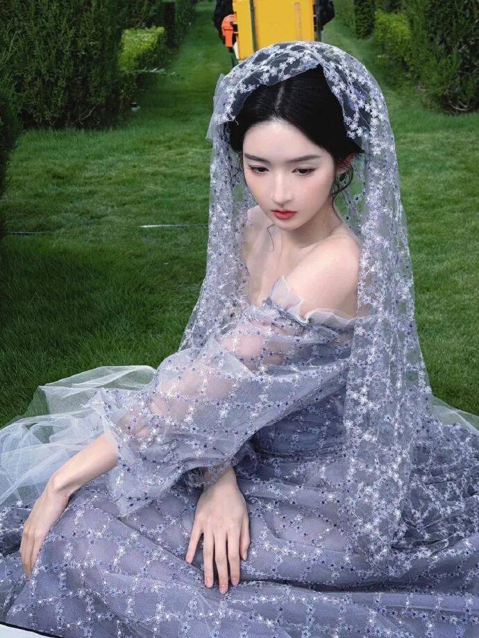 动前开启直播,邀请粉丝监督妆发细节,调整发型松散度与配饰,被赞 “紫藤萝公主” 和 “氧气美人”。