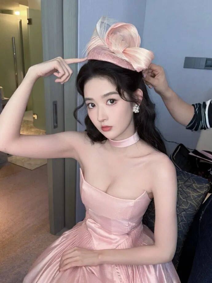 王玉雯首次尝试“粉红花仙子”妆容,粉色调腮红搭配花瓣头饰,她单手撩起来的样子很销魂,露出傲人的事业线,魔鬼身材尽显无疑,绝对性感撩人!
