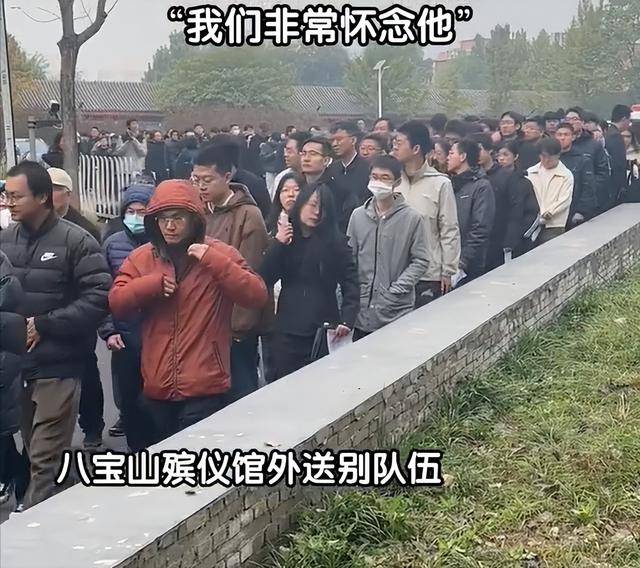 其实,早在八点左右的时候,殡仪馆外不断有自发市民前来送别杨振宁,到了8点半时,队伍已经排到了几十米开外了。