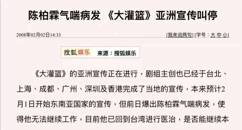 早年间,陈柏霖因为哮喘取消了电影的宣传活动,