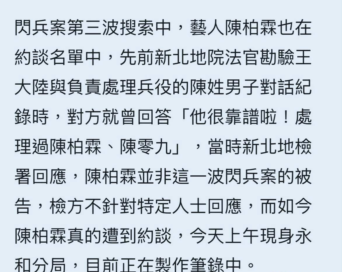 与陈柏霖一样,对于警察的到来,他也十分坦然,