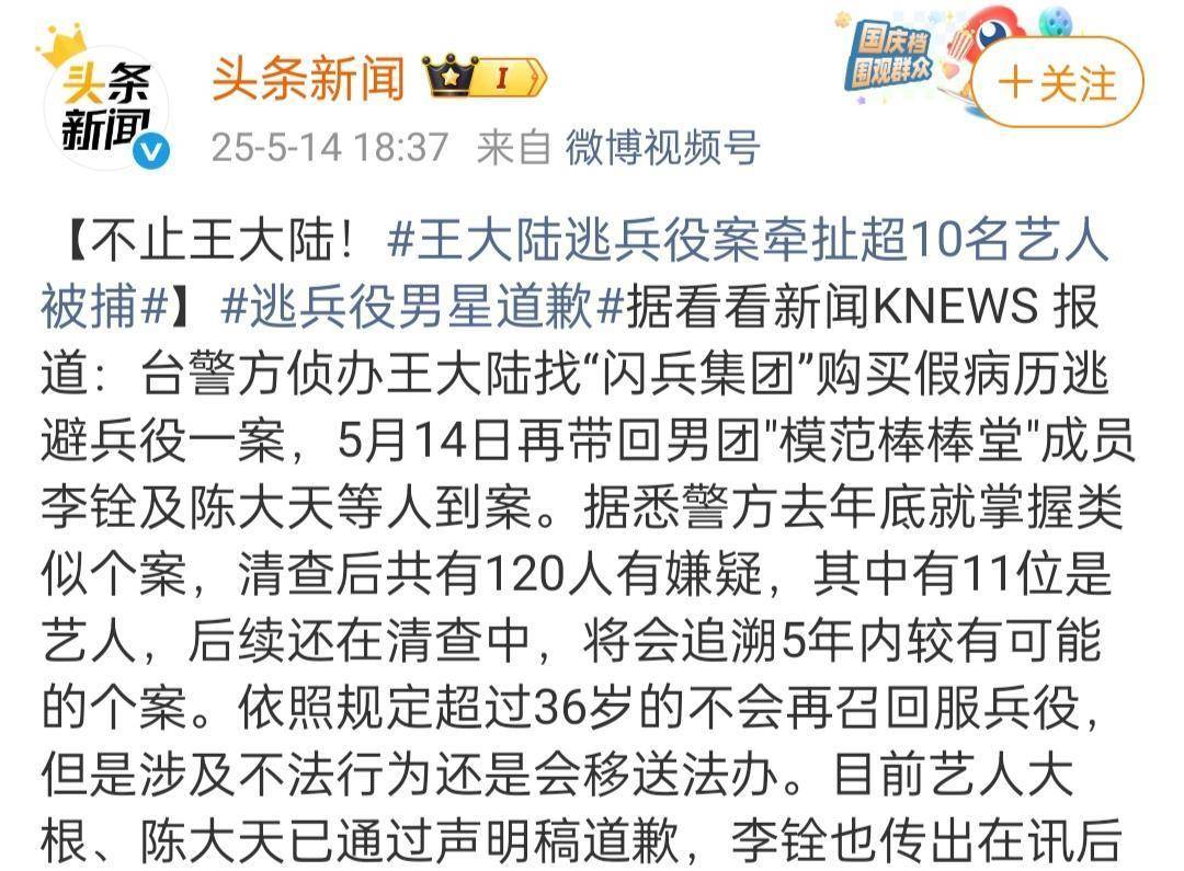 台湾一位小有名气的演员——王大陆因为逃兵役被捕。