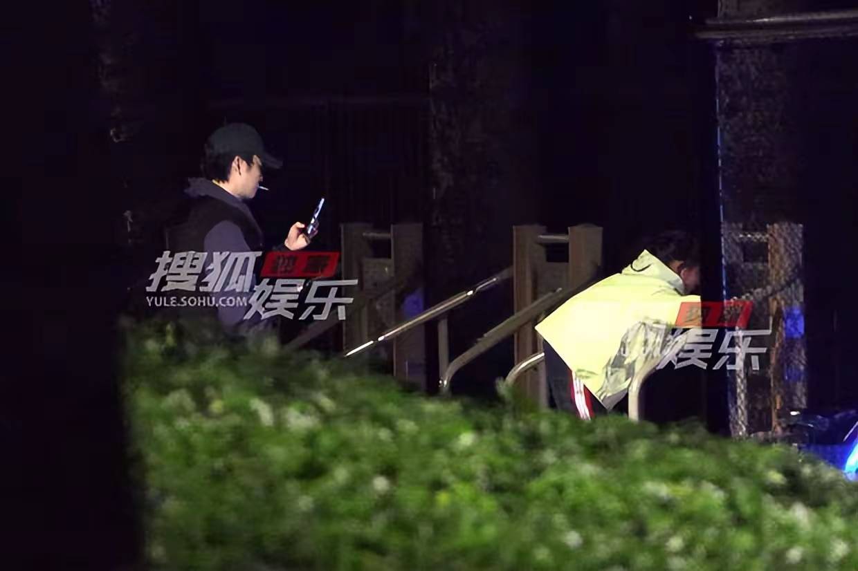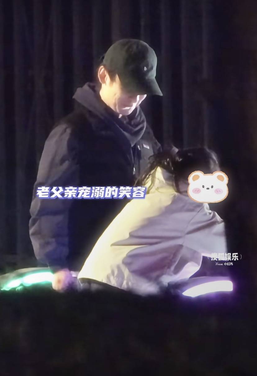 董子健在一旁给女儿拍照,他拿着手机、还叼着烟,这个模样痞帅痞帅的。