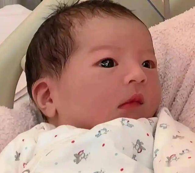 夫妻俩还晒出了娃的正脸,鼻梁高挺,一看就是美人坯子。