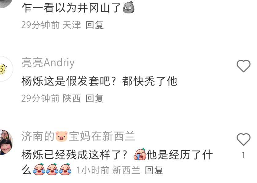 杨烁今年已经42岁,不可能还保持着像年轻人一样的好状态,但也不至于一下子就老成60岁的样子。
