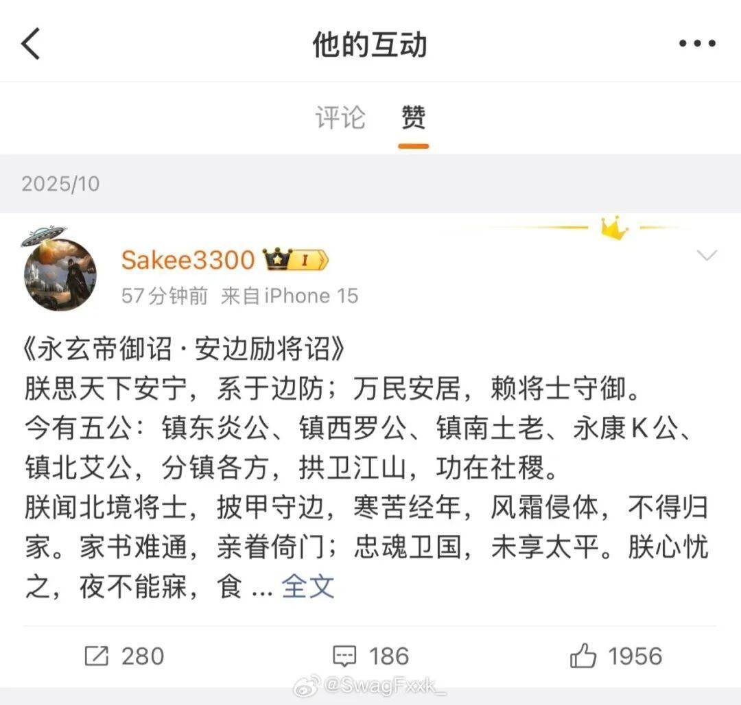 最搞的是,Sakee居然还在长文中赏赐了Asen!
