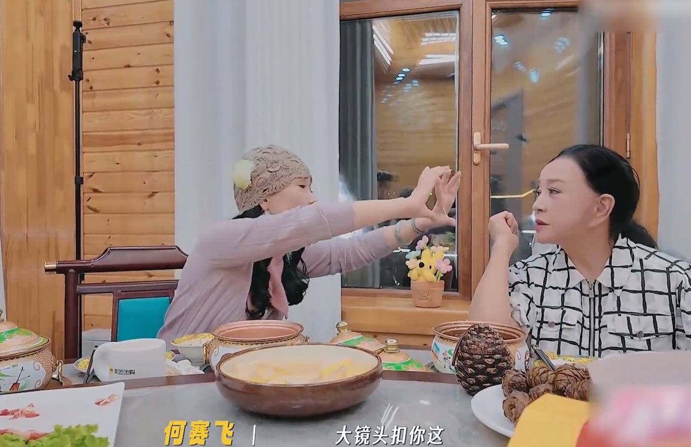 不仅对刘嘉玲如此,何赛飞几乎 “平等地创飞” 所有人:和张柏芝同住时,看着房间里的摄像机,她直言:“这摄像头连睡觉都拍?那我换衣服得去卫生间,可不能让隐私照流出去。” 说这话时,镜头赶紧从张柏芝脸上移开,没人知道张柏芝是否在心里犯嘀咕;对着宁静,她又提起:“电影圈有晚辈尊重前辈的传统,这可不能丢。谁没脾气?说得好听是个性,不好听就是膈应人。” 听得宁静当场沉默;刘晓庆自信表示自己年纪大了戏路反而更宽,何赛飞却皱眉反驳:“大姐,话是这么说,可大镜头怼到脸上,你这皱纹不明显吗?” 一句话让全场安静,刘晓庆笑容僵在脸上,张着嘴却不知如何反驳;就连节目里的小鲜肉也没逃过 —— 她吐槽现在社会审美单一,全是锥子脸,美颜一修都长得一样,旁边的柯淳只能埋头吃饭,一句话不敢接。
