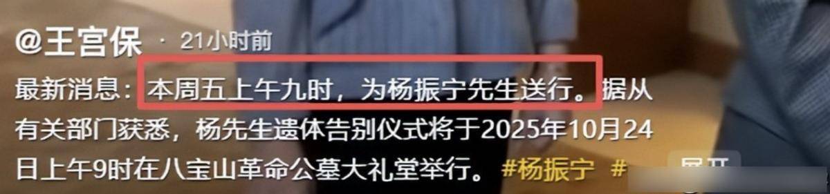 好在明天上午 9 点,杨振宁的遗体告别式将在八宝山革命公墓举行。