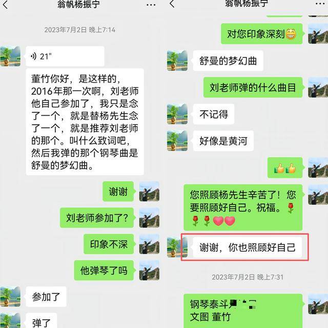 董竹后来在网上发文说,翁帆其实一直很有礼貌、有教养,以前两人聊天都是有来有回。