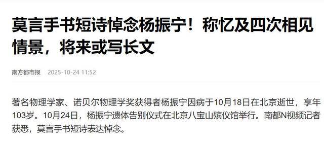 莫言的悼诗,则从文学的角度,为这段关系赋予了诗意的注解,“先生原本仙乡客,归去犹留百世馨”,这哪里是悼念,分明是在赞美一种超越生死的精神传承。