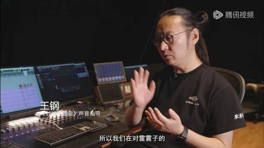 然后,声音指导王钢老师还会去做一些调整,再加上一些兽性的(声音)效果的层次。除了拟人化的东西,还有效果类的声音,包括雷震子的翅膀(震动)、身上的(肌肤)材质(等声音效果),来完成雷震子声音的制作。