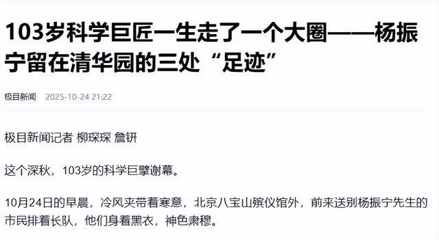 极目新闻2025-10-24103岁科学巨匠一生走了一个大圈——杨振宁留在清华园的三处“足迹”