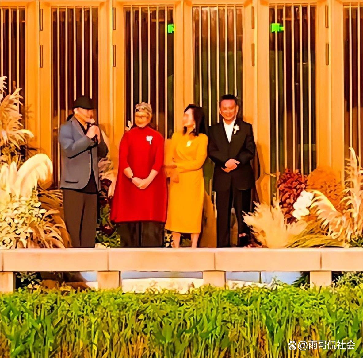 在婚礼上刘欢的老婆也上台发言,看得出两家人相处的很愉快,双方家长脸上都是满满的笑容,