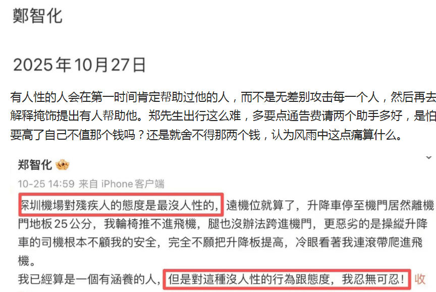 深圳机场事件,郑智化终于道歉了,但是这个道歉非常的没诚意,还把话题引导到其他地方,其心可诛