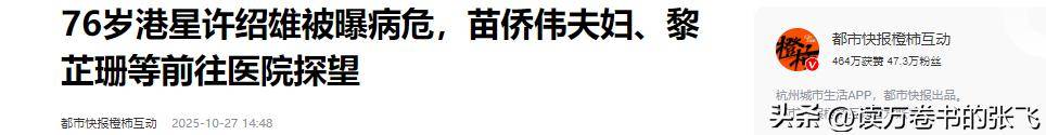 都市快报橙柿互动——76岁港星许绍雄被曝病危,苗侨伟夫妇、黎芷珊等前往医院探望